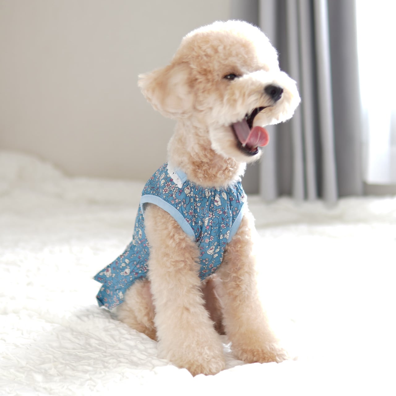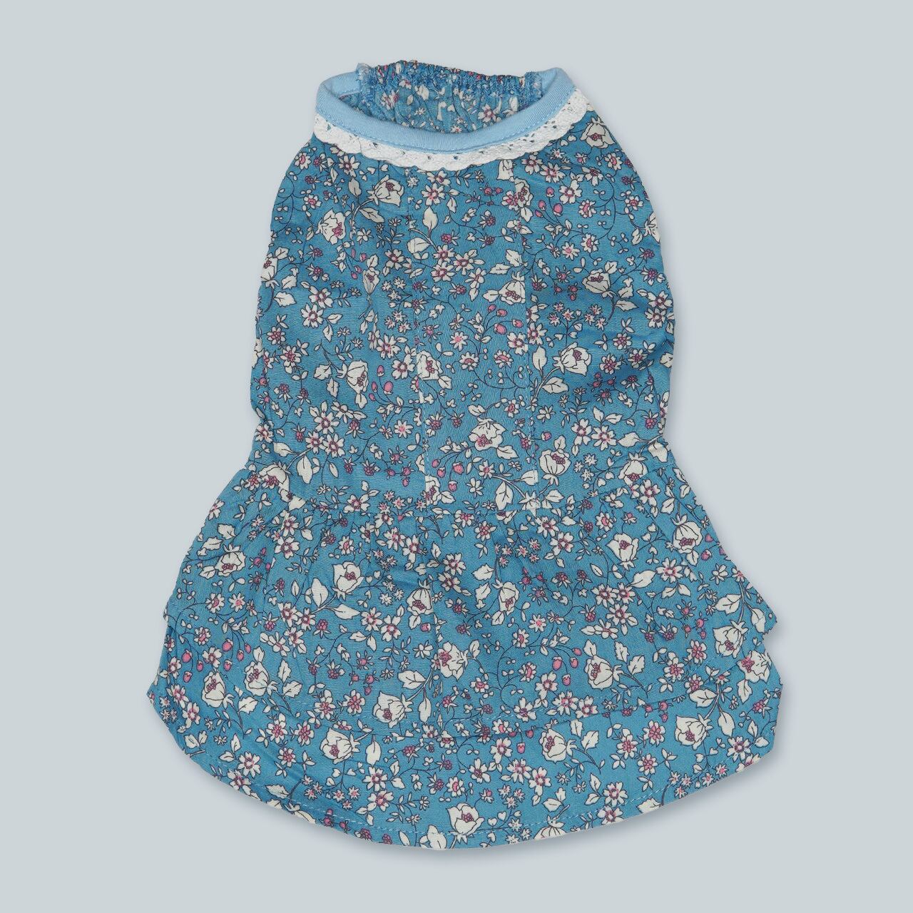 小花柄が可愛らしいリバティ柄のノースリーブワンピース。夏場でも涼しく動きやすいお作りです。