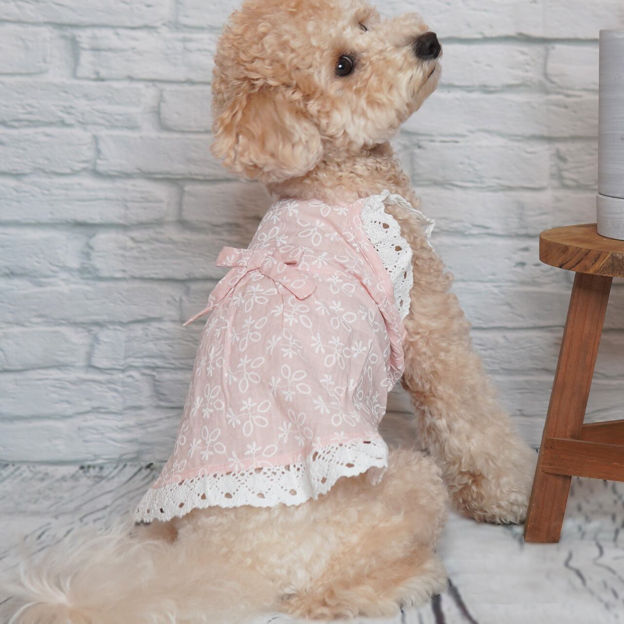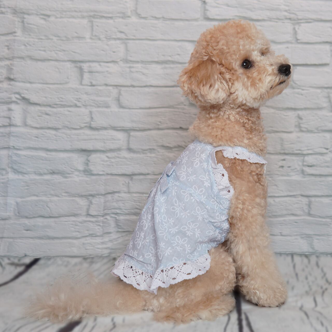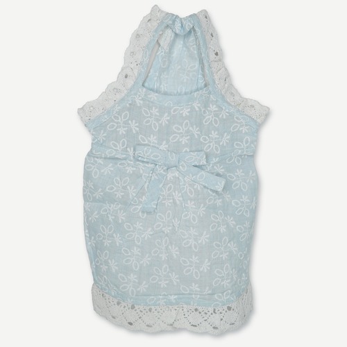 [即納] リボン刺繍ワンピース (ブルー/ピンク)