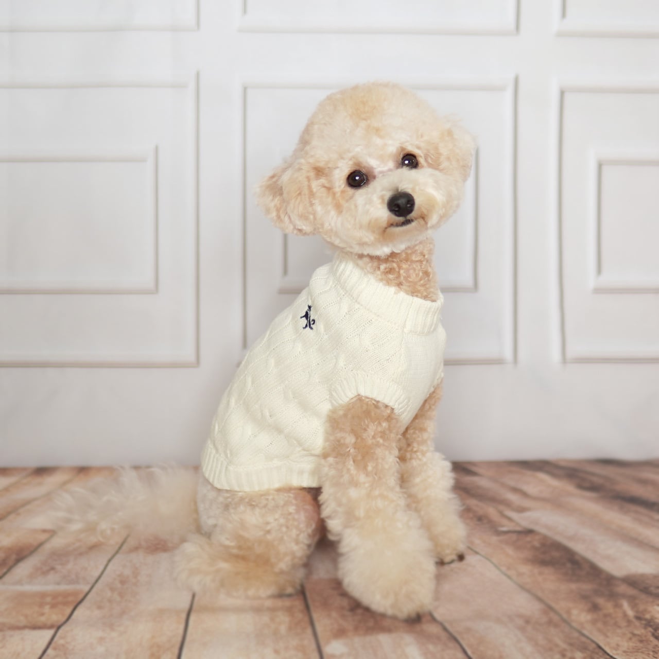 ワンちゃんの刺繍がワンポイントになったスクールユニフォーム風ニットベスト。